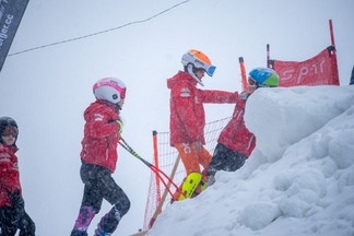 Pünktlich um 10.00 Uhr machten sich unsere größeren Kinder der Sparkassen Cup und Bacher Rennserie Maria Maier, Tizian Kotzbauer und Benett Toth als Vorläufer auf den Weg, um die Strecke für die Rennkinder zu testen.