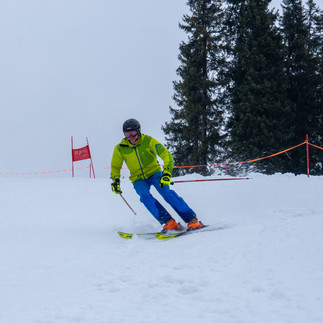 Nachdem unsere Kinder- und Jugendrennläufer durch den Stangenwald ihren Weg ins Ziel gefunden hatten, wies die Piste leider schon erhebliche Löcher und gebrochene Stellen auf. Die Favoriten auf den begehrten Titel des Vereinsmeisters und Vereinsmeisterin standen zu diesem Zeitpunkt noch oben und wussten, sie müssen bei diesen Bedingungen alles riskieren für eine hervorragende Zeit, um eine Chance auf den Sieg zu haben.
